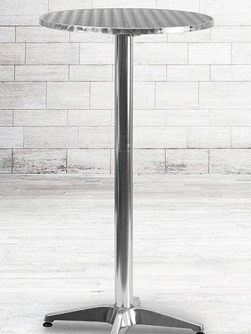 Hightop tables. Aluminum 23.25" round by 45" tall (4 available). Rental includes white stretch table covers.