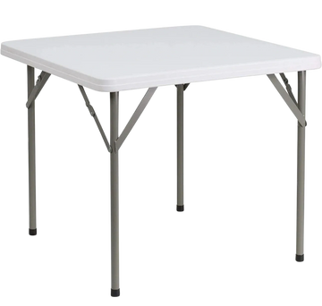 Folding 3' Square tables. Plastic white granite top. 34.25D x 34.25" W x 29.5"H