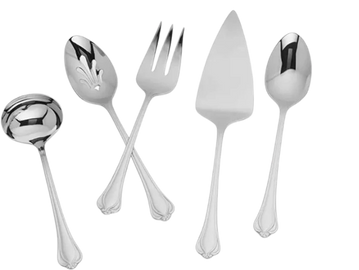 Assorted serving spoons, forks, tongs, ladles, etc. $10 to use as needed.